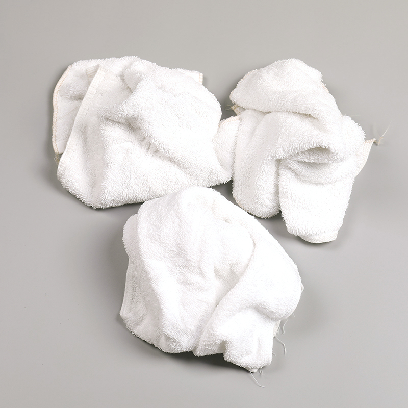 材質:酒店回收毛巾 顏色:白色 含棉量:100%棉 產品尺寸:40cm * 60cm或定制尺寸 產品包裝:10kg/包,25kg/包 產品特點:無亮片,無金屬,無灰塵,無斑點,材質柔軟,吸油吸水能力強 用途:船舶作業,安全防護,油漆作業,工業清潔等